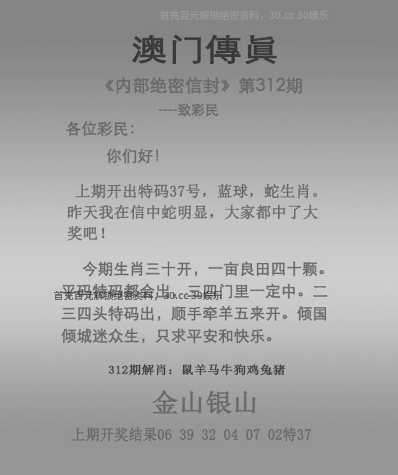 | 311期:【绝杀一头】【2头】开:蛇37中 |